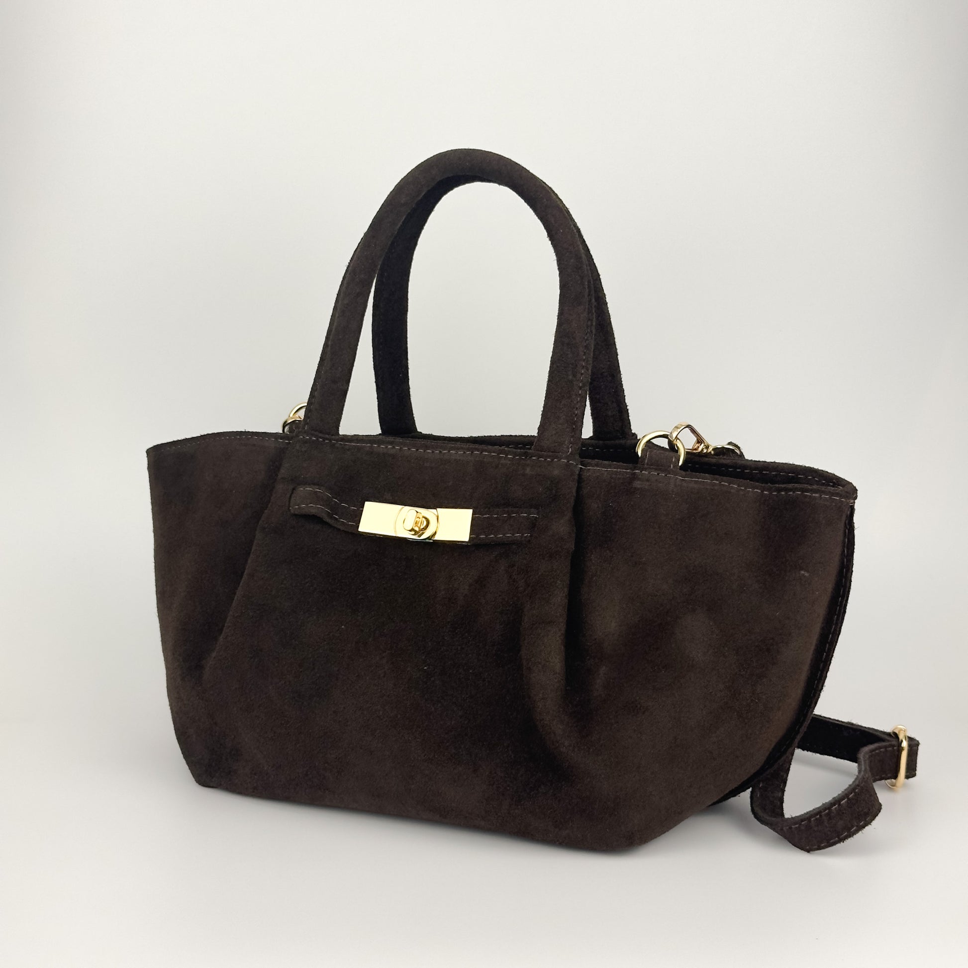 Sac en suède au design sophistiqué, pensé pour celles qui recherchent une pièce alliant finesse et utilité. Sa matière douce et sa forme structurée apportent une touche de caractère tout en conservant une ligne harmonieuse et moderne.