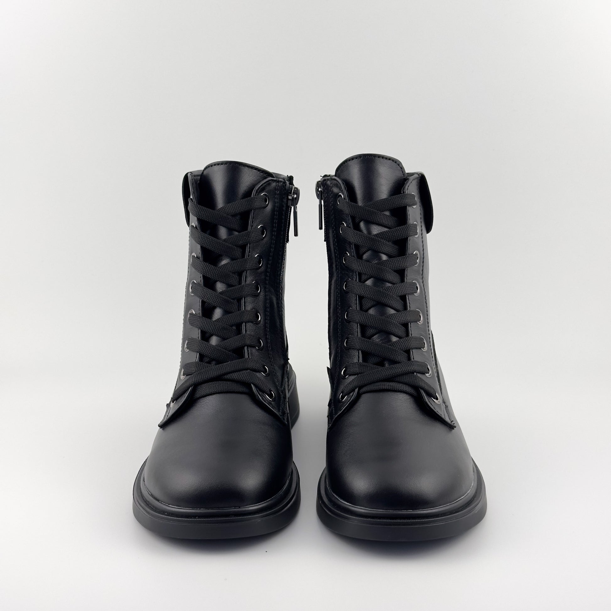 Dotées d’une fermeture éclair latérale, elles offrent un enfilage rapide et pratique, tandis que la semelle stable assure un excellent confort lors de la marche. Les œillets métalliques et le petit détail décoratif sur le col ajoutent une touche subtile de caractère.