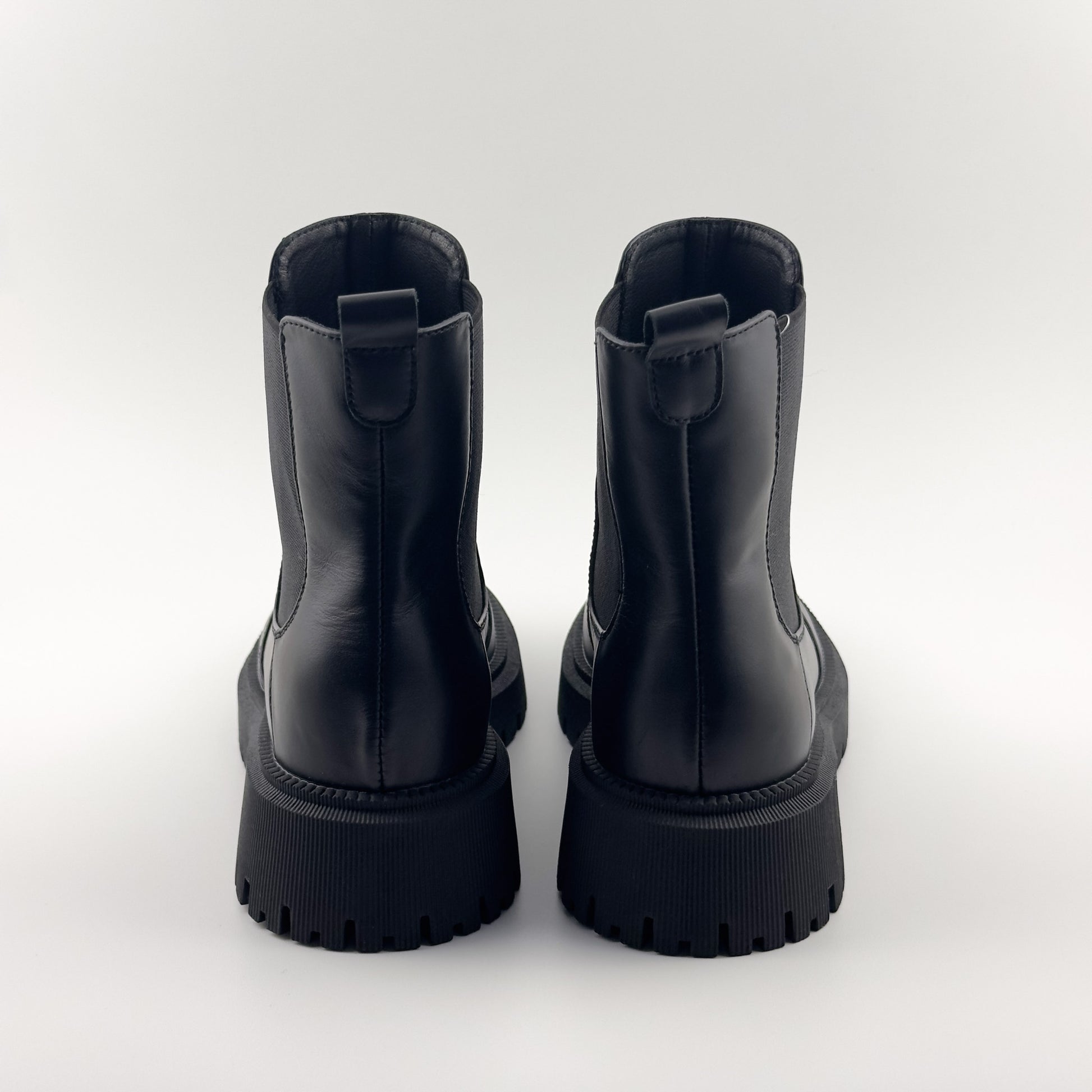 Bottines en cuir véritable au style moderne et minimaliste, conçues avec une finition lisse qui met en valeur leur silhouette épurée. Elles sont doublées à l’intérieur de molleton. Leur design contemporain s’intègre facilement dans une garde-robe quotidienne et apporte une touche élégante et urbaine.